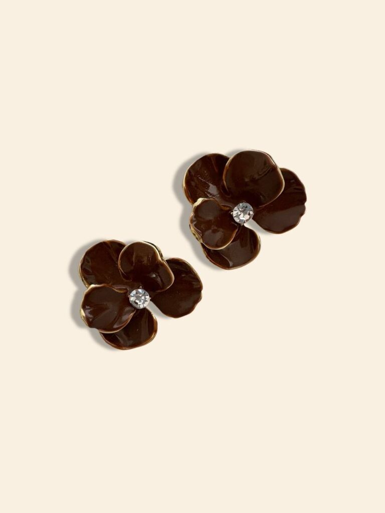 خرید محصول گوشواره میناکاری گل قهوه ای